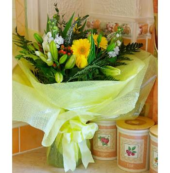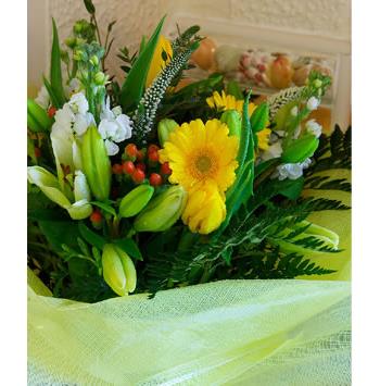 Autumn Glow - Always a favourite and guaranteed to bring a burst of colour to brighten any day! A stunning mix of yellow mini Gerbera and lovely yellow Lillies, stunning large Fresia and a mix of Tulips, all crafted by your florist, into this perfect gift for any time of the year. Your stunning shades of autumn blooms are arranged amongst lush foliage including Eucylyptus and a soft blend of Ruscus to create the perfect gift.