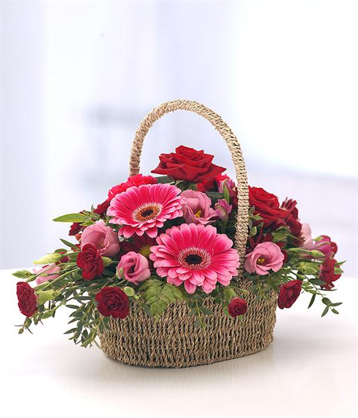 • This flower arrangement is delivered in a basket