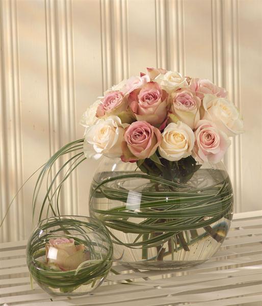 A stunning gift for the mother and baby. A beautiful glass vase containing mixed cream and pink Roses attached to a mini glass vase containing a single Rose for the baby.