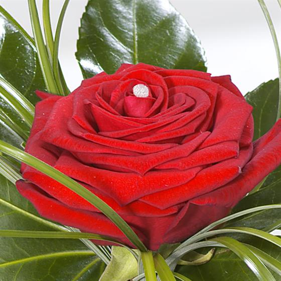 Simple elegance. A single red Rose with a twinkle of Diamante in an elegant black vase.