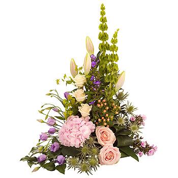A pretty pastel arrangement featuring pink and cream Roses, pink and purple Phlox, pink Lilies and Hydrangea with purple Lisianthus and a generous array of foliage.